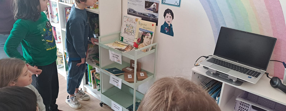 O punto final do xogo: a biblioteca. Alí atoparon o seu agasallo por completar o reto. Un xogo de mesa para cada aula cortesía de Rosalía!